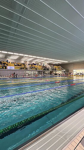 Insgesamt war der Wettkampf für alle Schwimmer ein voller Erfolg, geprägt von zahlreichen persönlichen Bestzeiten und beeindruckenden Einzelleistungen. Trotz der Anstrengungen eines intensiven Wochenendes verbrachte die gesamte Mannschaft die Zugfahrt gemeinsam bei einem unterhaltsamen Spiel, das für viel Spaß sorgte und von den vielen Zugverspätungen ablenkte. Für alle Beteiligten, sowohl Schwimmer als auch Trainer, steht fest: Dieses Wochenende war ein unvergessliches Erlebnis, das in Erinnerung bleiben wird.